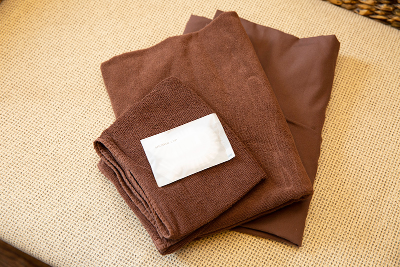 下着をすべて脱いで浴衣に着替えます。下着を着用希望の方には、使い捨て下着をレンタル(有料)します。